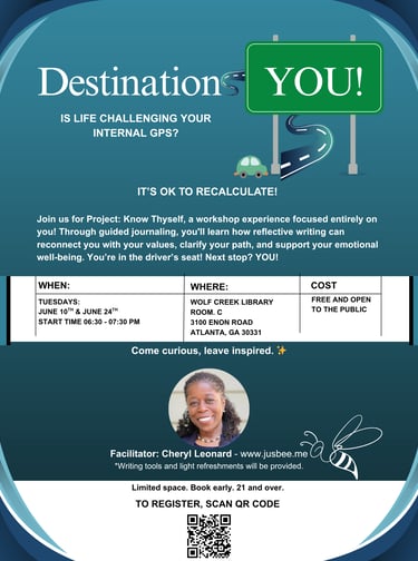 Join us for "Project: Know Thyself," an empowering workshop experience designed just for you! In these sessions, you'll use journaling as your guidance tool to clearly define your path forward. Your destination? YOU!